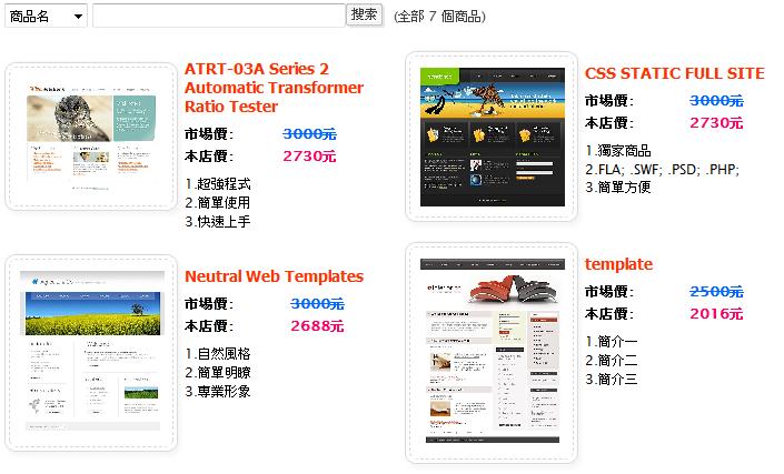 2.每行顯示3組產品,頁面顯示的總產品數量可由管理者於後台設定。