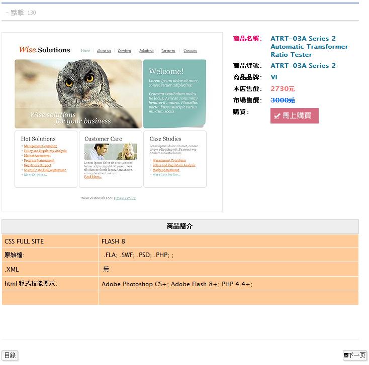 內頁右方間區塊,管理者可於後台編輯產品內容。