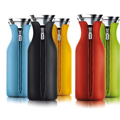 當然它也延用咖啡獨奏那件讓人稱讚的拉鍊太空衣材質外套,讓飲料的保冷度更持久,這次除了設計經典色黑色外,還有紅色、橘色、藍色、綠色等鮮豔的顏色,適合用來標示分別裝入水、果汁、牛奶、冰茶、冰咖啡等冷飲,拉鍊的設計方便穿脫,瓶身和蓋子都可送入洗碗機洗滌。